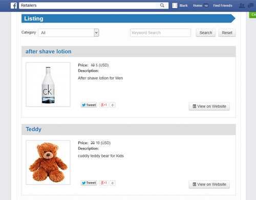 Use our Facebook store application to show or sell from your Facebook Page.